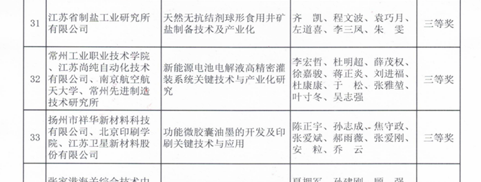 4月28日,江蘇省輕工協會發(fā)布《關于第十一屆江蘇省輕工協會科學技術獎勵的決定》及其授獎項目目錄,共57個項目獲獎。