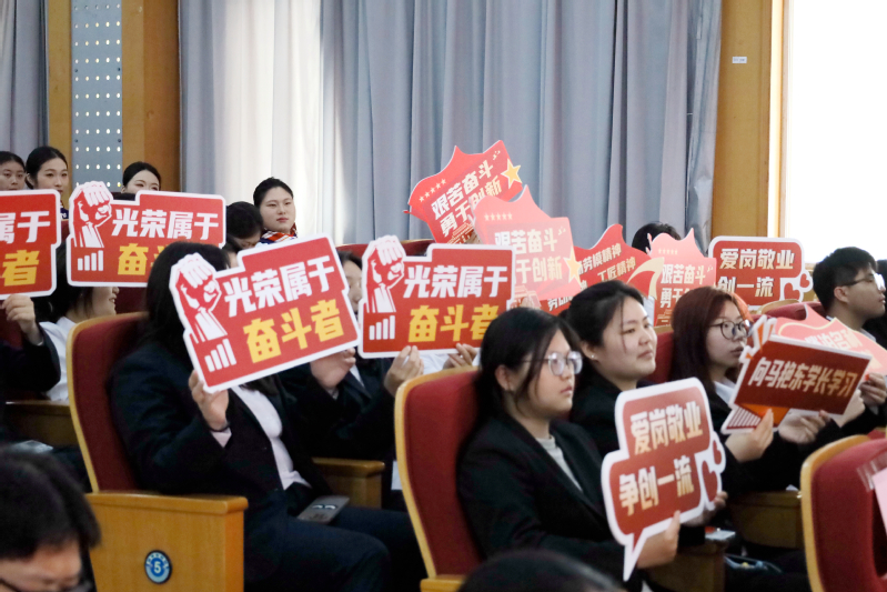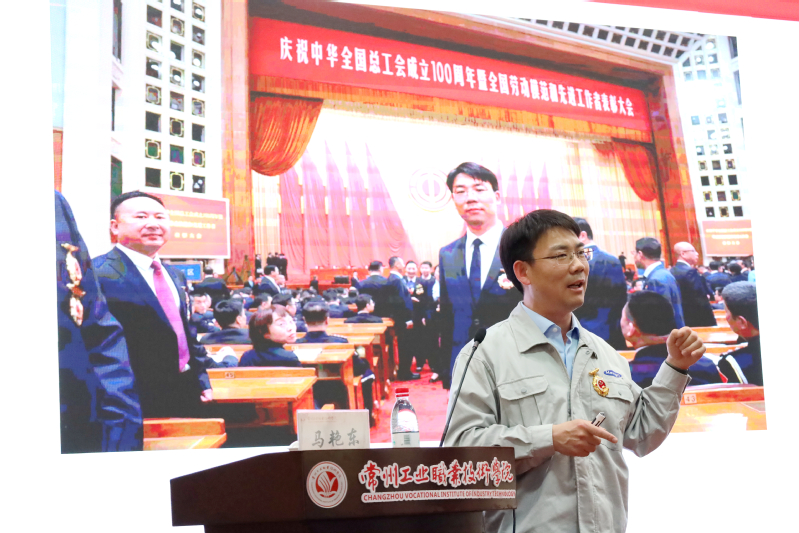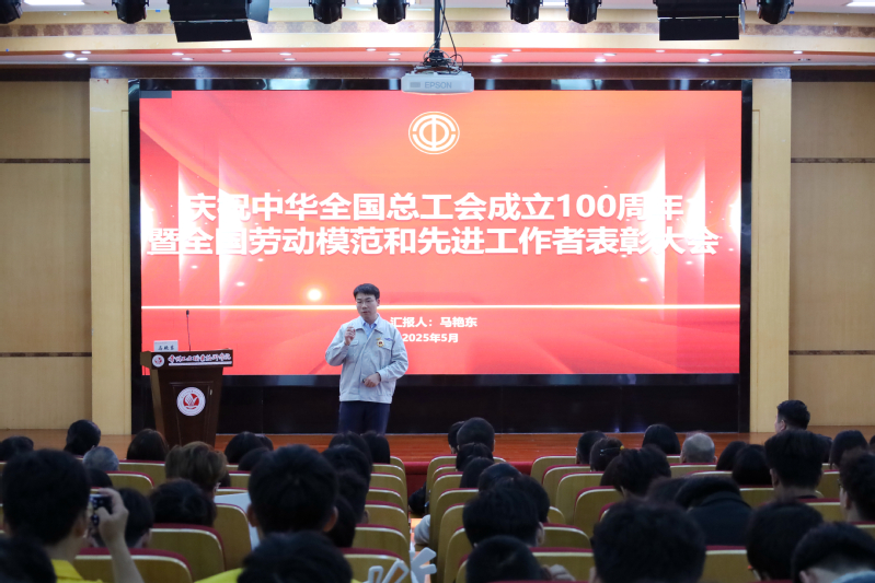 宣講會上,馬艷東回憶了4月28日在北京參加慶祝中華全國總工會成立100周年暨全國勞動模范和先進工作者表彰大會的經過,談了自己的獲獎感言:“我胸前的這些榮譽,不是憑空得來的,每一枚獎章背后,都是數不清的汗水和堅持。榮譽加身不是終點,而是新的起點。”“咱們學校向來人才輩出,從這里走出的全國勞模不止我一個,還有師兄鄧建軍、吳宏勝,這說明只要肯下苦功夫,機會永遠會青睞有準備的人。”他鼓勵同學們,每一滴汗水都有回響,每一份堅持都是未來的饋贈。不要被“不可能”嚇退,更不要被“做不到”定義。“只要足夠努力,在座的各位同學都可以當勞模!”