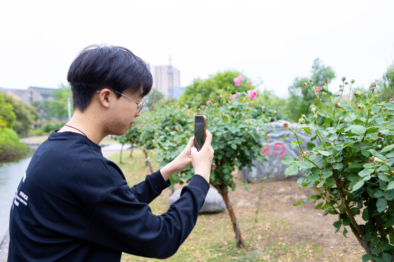 理論講解結束后,學生們在校園內尋找拍攝目標,進行實踐體驗。同學們調整角度、嘗試不同光影效果。有的同學俯身貼近草地,用微距鏡頭記錄花瓣上的水珠;有的仰拍樹冠,捕捉逆光下的星芒與葉片層次。這次活動讓不少同學體會到了“美在細節”的含義,并表示未來會更用心記錄生活中的自然之美。