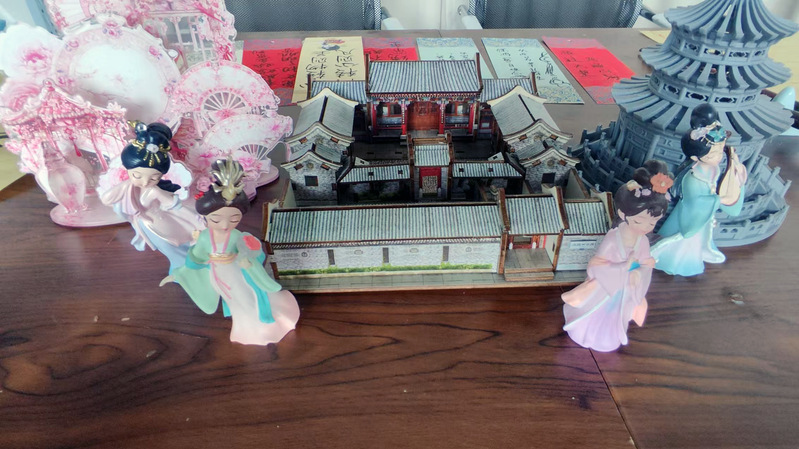 活動現場,社團成員展示了不同類型的以中華優秀傳統文化為主題的手辦模型作品。從敦煌飛天的飄逸衣袂,到青銅器紋樣的精細復刻;從《山海經》神獸的奇幻造型,到微縮版江南園林的亭臺樓閣,同學們通過手辦作品交流分享背后的中華文化故事和東方美學內涵。