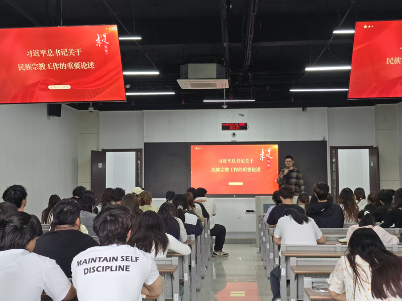 輔導員肖克以“習近平總書記關于民族宗教工作的重要論述”為題,與學生代表探討了如何樹立正確的民族觀和宗教觀。他強調,作為新時代大學生,在今后的學習和生活中要樹立正確的價值觀,堅決抵制各種錯誤思潮和分裂勢力的影響,自覺維護國家的統一、民族的團結和社會的穩定;要加強學習與交流,了解不同民族的文化和宗教信仰,增進對各民族的了解和尊重;要增強法治意識,自覺遵守國家的法律法規,不參與任何非法宗教活動,不傳播宗教極端思想,堅決抵制境外宗教勢力的滲透和破壞活動。
