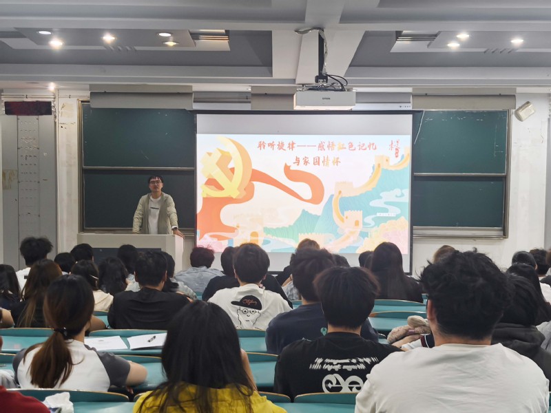 輔導員朱益桐以“聆聽旋律——感悟紅色記憶與家國情懷”為主題,與學生深入探討紅色歌曲的時代價值。他強調,紅色經典不僅是歷史的回響,更是新時代青年成長的精神動力。在傳承紅色音樂文化中,同學們要深刻領會紅色歌曲的精神內核,傳承紅色音樂中的集體主義精神,在音樂美育中厚植家國情懷,將個人理想融入國家發展。他鼓勵同學們以音樂為媒,讓紅色基因代代相傳,在實現中華民族偉大復興的新征程上譜寫青春華章。