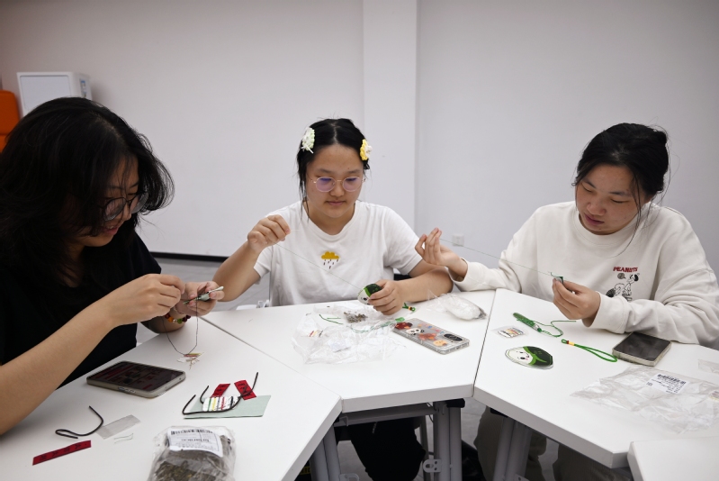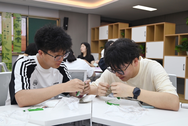 巧手傳承非遺技藝。團員青年齊聚學生活動中心,學習傳統(tǒng)香囊制作技藝。活動現場,同學們認真穿針引線,將艾草、菖蒲等中藥材縫制成各式香囊,既體驗了傳統(tǒng)手工藝的魅力,又深入了解了端午佩香囊的民俗文化內涵。活動結束后,同學們將自己制作的香囊贈送給老師和同學,傳遞節(jié)日祝福。