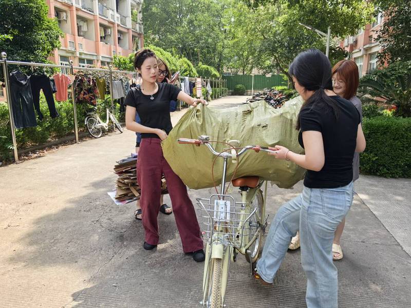 變廢為寶,舊物煥發新生機。學生們踴躍參與舊物回收行動,將閑置的舊衣物、快遞紙盒等帶到活動現場。手工社成員現場教學,指導同學們將這些廢棄物改造成環保袋、筆筒等實用物品。“快遞盒硬度足夠,裁剪后貼上裝飾布,就能變成收納盒。”手工社成員莫云杰一邊演示一邊介紹。活動不僅減少了垃圾的產生,更讓同學們體會到“物盡其用”的成就感。