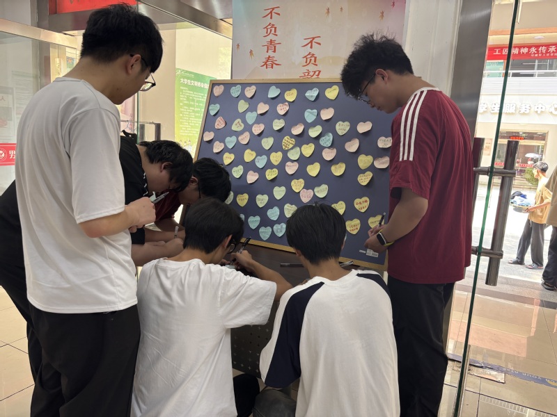 撕掉浪費標簽,爭做勤儉踐行者。展板上貼滿寫有“剩宴”“沖動購物”“一次性用品依賴”等浪費現象的標簽,參與者可撕下標簽并貼上“光盤行動”“理性消費”“重復利用”等節約承諾。現場還設置了“節約金點子”征集墻,同學們紛紛留言分享生活妙招,如“用洗衣液瓶種綠植”“選修課筆記電子化”。這種互動形式喚醒了青年對浪費行為的反思,強化了節約習慣的養成意識。