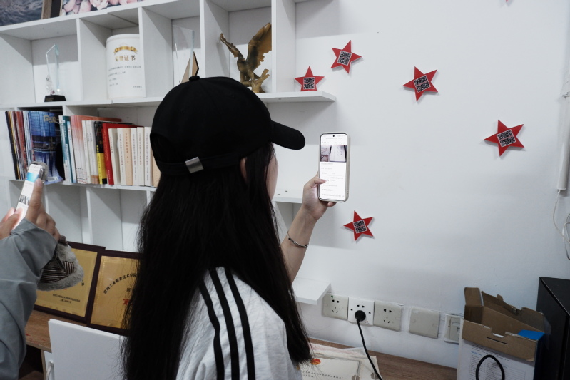 在“一站式”學生社區紅色博物館中,“善‘學’方能‘明理’、常‘思’方能‘增信’、勤‘踐’方能‘力行’、多‘悟’方能‘崇德’”的標語格外醒目,搭配著星星形狀的二維碼,吸引眾多同學駐足參與。大家拿出手機掃碼,通過線上平臺學習紅色理論知識、感悟思想偉力。這種創新學習形式,打破時間與空間限制,將理論學習融入日常,讓同學們在“指尖互動”中深化對黨的創新理論的理解,推動理論學習走深走實、入腦入心。