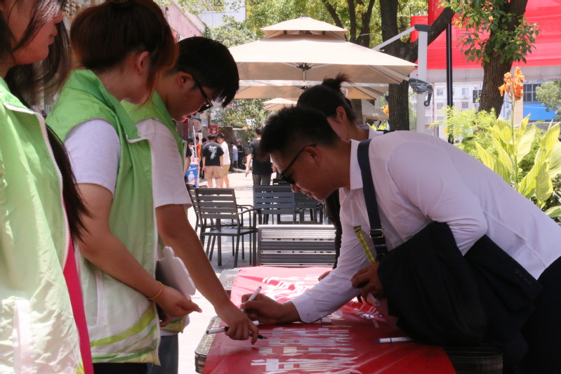 活動現(xiàn)場,一條印有鮮明活動口號的橫幅成為凝聚共識的焦點。同學(xué)們鄭重簽下自己的姓名,每一筆都承載著對節(jié)約理念的認同和踐行綠色生活方式的堅定承諾。簽名不只是形式,更是將節(jié)能意識深植內(nèi)心的生動儀式。