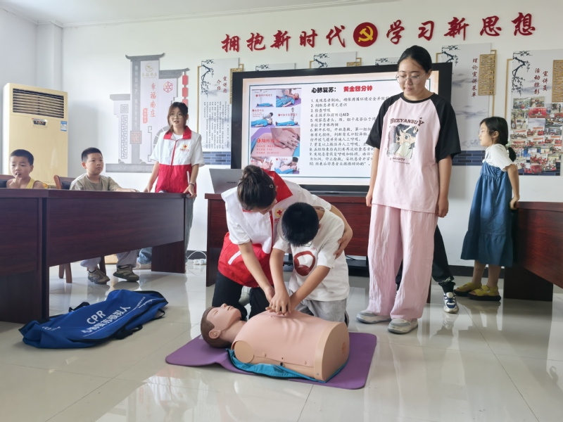 實踐團在課程設計中注重勞動技能與生命教育相結合?!靶⌒【茸o員”急救培訓中,志愿者詳細講解心肺復蘇、海姆立克法以及常見的創傷處理方法。孩子們神情專注地利用假人模型開展實操訓練,在志愿者手把手的指導下,逐步掌握了急救動作的要領。此外,志愿者還帶領孩子們參與課后教室衛生打掃以及村內環境義務清潔等公益勞動,通過這些親身勞動體驗,在孩子心中播下了奉獻的種子,也讓大家深刻體會到勞動的艱辛與價值。