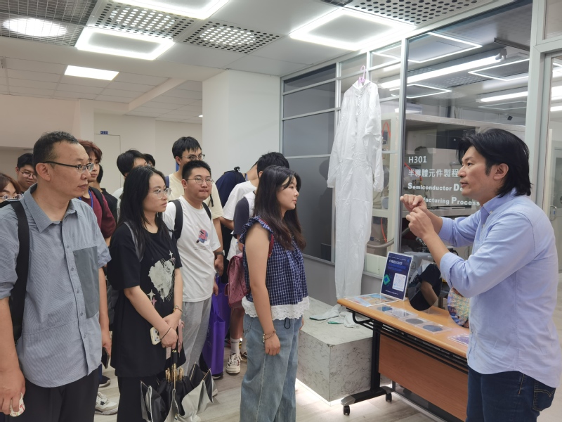 在龍華科技大學研學期間,我校師生先后參觀走訪了半導體元件制程中心、3D數位PCB智慧制造類產線工廠、創意成型中心等實驗實訓基地,并借助案例推演、項目實操等多元教學形式,圍繞“三創教育”“生成式AI”等領域展開深度研討。