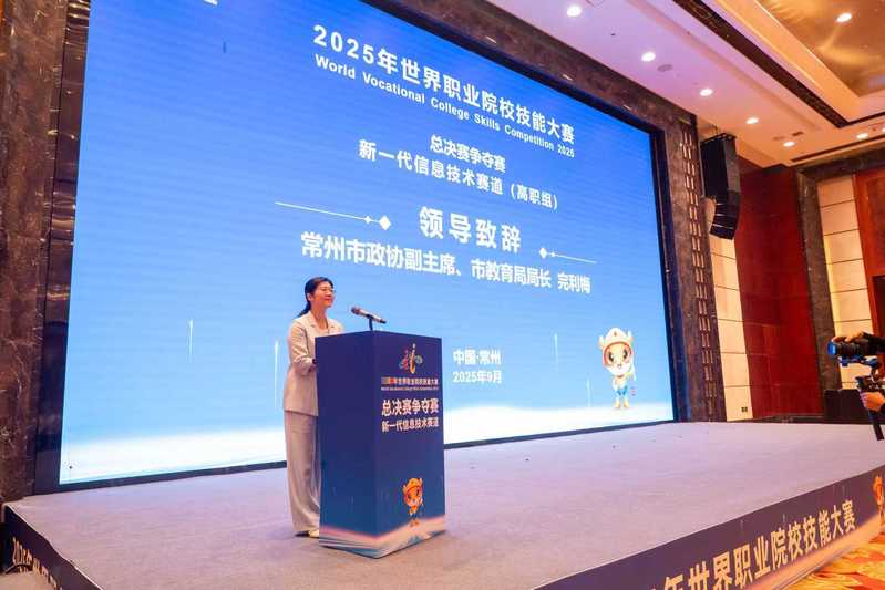 常州市政協副主席、市教育局局長完利梅致辭。她表示,此次大賽在常州的舉辦,既是對常州市持續推進產教深度融合實踐的高度認可,也必將進一步提升“技能常州”品牌國際影響力,拓展職業教育對外合作空間,為常州乃至長三角區域高質量發展注入新的強勁動能。