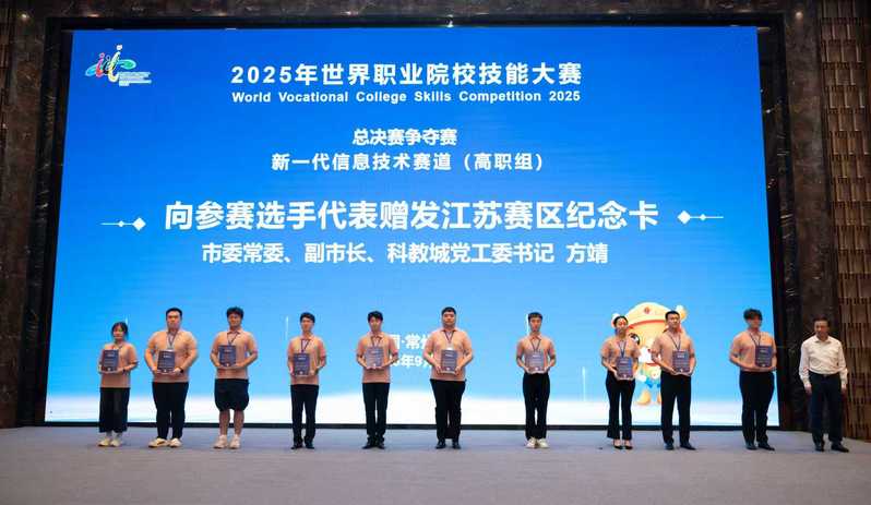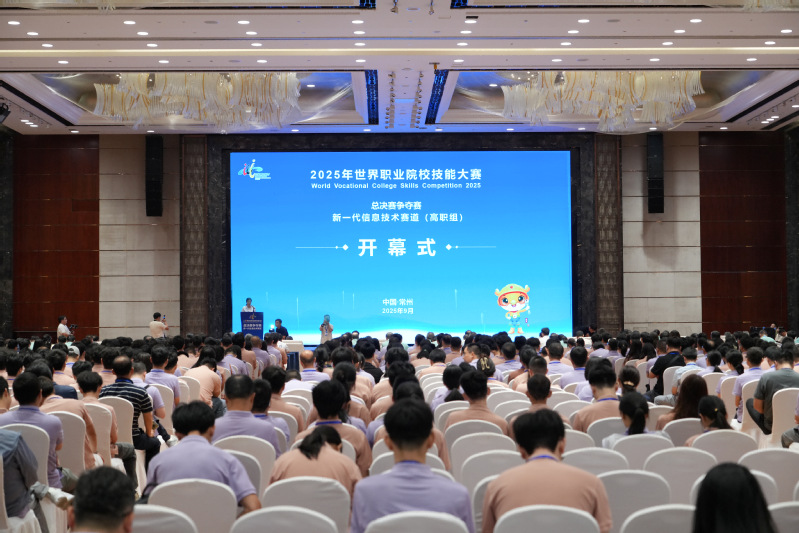 9月8日,2025年世界職業院校技能大賽新一代信息技術賽道高職組總決賽爭奪賽在常州開幕。大賽由教育部牽頭、聯合國家部委及行業組織主辦,江蘇省教育廳、常州市人民政府協辦,我校聯合科教城其余四所高職院校共同承辦。其中,新一代信息技術賽道總決賽爭奪賽(高職組2組)由我校承辦。