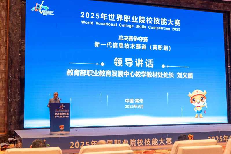 教育部職業教育發展中心教學教材處處長劉義國代表大賽組委會致辭。他指出,本屆大賽實現了一系列重要創新與突破,致力于為全球產業發展輸送能夠適應新技術、新業態、新模式要求的復合型技術技能人才。