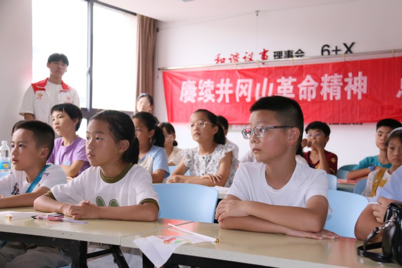 互動問答環(huán)節(jié),現(xiàn)場氣氛熱烈非凡。小朋友們的好奇心被充分激發(fā),“井岡山在哪里呀?”“革命先烈們不怕困難嗎?”…… 一個個充滿童真的問題接連拋出。志愿者們耐心且細(xì)致地逐一解答,引導(dǎo)小朋友們思考。而當(dāng)志愿者提出關(guān)于井岡山精神內(nèi)涵的問題時,小朋友們也能結(jié)合之前的講解,認(rèn)真思索、積極回應(yīng),井岡山精神的種子在問答互動中悄然萌芽。