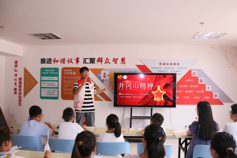 活動現(xiàn)場,實(shí)踐團(tuán)志愿者們化身“紅色講師”,以井岡山精神為核心,為社區(qū)小朋友們帶來了一場沉浸式的歷史回顧。從井岡山革命根據(jù)地的創(chuàng)建,到紅軍戰(zhàn)士們在艱苦卓絕的戰(zhàn)斗歲月里堅(jiān)守信念、頑強(qiáng)奮斗的事跡,志愿者們用通俗易懂的語言和鮮活的案例,將那段波瀾壯闊的歷史緩緩鋪陳在小朋友們眼前,讓他們對井岡山精神有了初步且生動的認(rèn)識。