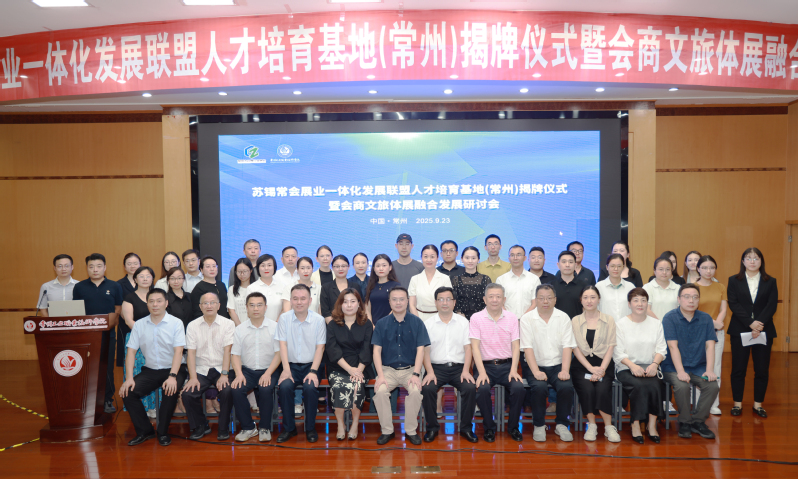 9月23日,由常州市會展行業協會主辦的蘇錫常會展業一體化發展聯盟人才培育基地(常州)揭牌儀式暨會商文旅體展融合發展研討會在我校舉行。我校副校長檀祝平,常州市貿促會會長周逸俊,蘇錫常會展業一體化發展聯盟輪值主席、無錫市會議展覽業協會執行會長薛微出席活動。會議由常州市會展行業協會副秘書長劉艷主持。