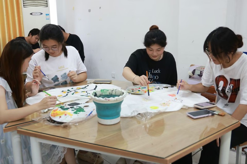 同學(xué)們用畫筆和材料充分發(fā)揮自己的藝術(shù)創(chuàng)意,在潔白的孔明燈上勾勒?qǐng)D案、涂抹色彩。有人繪制了充滿奇幻色彩的星空,還有人寫下對(duì)未來的美好期許……同學(xué)們相互交流創(chuàng)意、分享技巧,互幫互助完成孔明燈的制作。藝術(shù)療愈的魅力在此刻盡顯,大家在專注于手作的過程中,暫時(shí)忘卻了學(xué)業(yè)和生活的壓力,心靈得到了放松與舒緩。