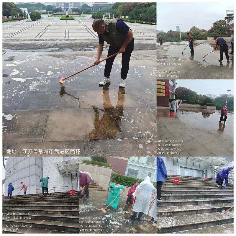 環(huán)境服務(wù)持續(xù)升級,物業(yè)服務(wù)團(tuán)隊(duì)聚焦細(xì)節(jié)提質(zhì),不僅完成校園公共區(qū)域日常清掃,更對圖文樓及敬業(yè)樓地下車庫、知行樓大臺階、圖文樓北側(cè)臺階、文體中心走廊及臺階等積污區(qū)域開展深度清潔,對校園道板路面的雜草進(jìn)行全面清理,用高壓水槍沖洗地面油污,用專用清潔劑擦拭公共設(shè)施和門窗玻璃;同時(shí)對走廊、樓梯扶手等高頻接觸部位進(jìn)行深度消殺,為師生健康筑牢安全防線。
