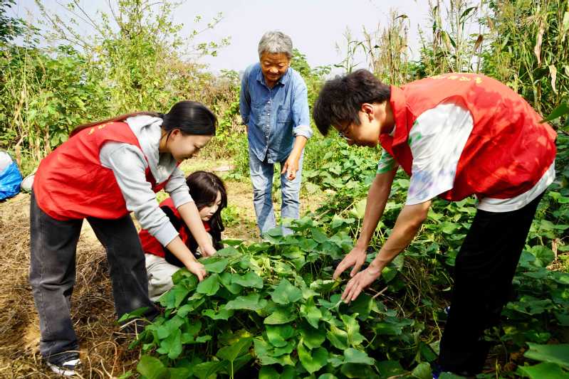 同學們走進農田,在農民伯伯和奶奶的指導下,親手體驗挖山芋、采摘黃瓜與辣椒等農事勞作。從理論到實踐,從認知到體驗,同學們在躬身耕作中真切體會到“一粥一飯,當思來之不易”的深刻含義。