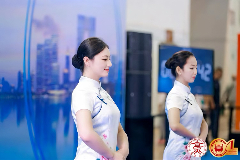 本次大賽以團隊賽為主,參賽團隊由1名宴會定制服務師、1名宴會服務人員和2名禮儀展示人員組成,各崗位分工明確、緊密配合,共同完成競賽任務。顧昕作為本次大賽的禮儀展示人員之一,與團隊伙伴配合默契,在規定時間內完成高標準禮儀展示,身姿優雅、動作規范,既彰顯了餐飲行業服務禮儀的專業度,又生動詮釋了中國禮儀之美。