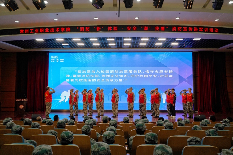 10月22日,我校聯(lián)合常州市消防救援支隊(duì)、武進(jìn)區(qū)消防救援大隊(duì)開展2025級新生“消防宣傳進(jìn)軍訓(xùn)”系列活動,為新生們上了一堂生動的消防安全教育課。學(xué)校黨委書記席海濤、常州市消防救援支隊(duì)支隊(duì)長王棟、常州市消防救援支隊(duì)一級督導(dǎo)員吳宜猛、學(xué)校黨委副書記吳麗云、副校長檀祝平、武進(jìn)區(qū)消防救援大隊(duì)大隊(duì)長趙鼎、武進(jìn)區(qū)消防救援大隊(duì)教導(dǎo)員江擁兵出席本次活動。