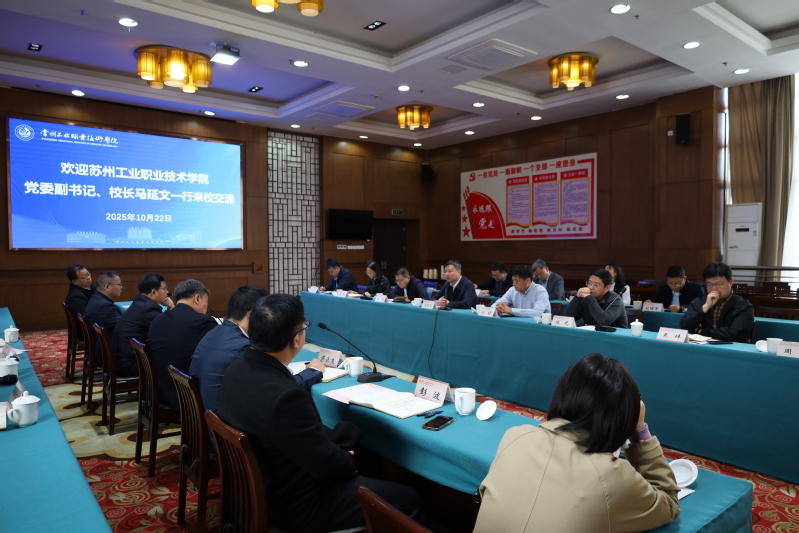 10月22日,蘇州工業(yè)職業(yè)技術(shù)學(xué)院黨委副書記、校長馬延文率副校長劉曉、蘇華、陳藝等一行12人蒞臨我校,圍繞“十五五”時期職業(yè)教育戰(zhàn)略規(guī)劃、產(chǎn)教融合創(chuàng)新路徑及高質(zhì)量發(fā)展舉措與我校展開深度交流。我校黨委書記席海濤,副校長檀祝平、蔣正炎及相關(guān)部門負(fù)責(zé)人熱情接待。