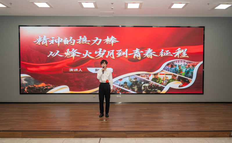 決賽現場,荊浩以《精神的接力棒:從烽火歲月到青春征程》為題,用“跨越時空的對話”開篇,通過模擬與抗戰老兵的視頻連線,以“我們勝利了”的堅定回應引發全場情感共鳴。隨后,他結合實地走訪蘭翔社區、記錄老兵事跡的親身體驗,生動講述了甄樹田“把名字縫進軍裝”的赤膽忠心、陸恩和“以電話線為戰場神經”的使命堅守、李志芳“單手裝彈護炮位”的無畏擔當,清晰勾勒出“以身許國—使命在肩—清澈的愛”的精神傳承脈絡。同時,他還聯系我校23電商631班學生王亞琦從軍營到技能賽場的奮斗故事,提出“報國戰場在課堂里、在實踐探索中”的青春感悟,既貼合“弘揚中國精神”的活動主題,又展現了常工業學子的成長思考,7分鐘的脫稿宣講邏輯清晰、情感真摯,贏得評委與觀眾的一致認可。