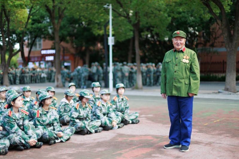 訓練場上,旌旗獵獵、口號聲聲。陸恩和老先生身著綠色軍裝,胸前的榮譽獎章在陽光下閃耀,成為“行走的思政課”最生動的“實踐范本”。他以親歷者的視角將時光拉回當年的崢嶸歲月,講述著物資匱乏、炮火連天的戰斗環境,革命先烈舍生忘死的動人故事,平實的話語里滿是堅定的信仰和忠誠。