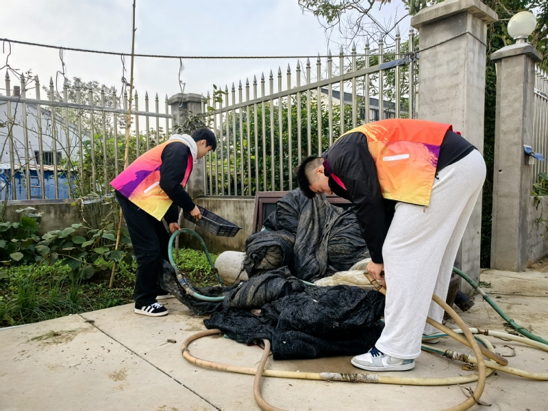 當天下午,學生志愿者們懷著誠摯的祝福與敬意,來到嘉澤鎮王家莊幾位高齡老人的家中。他們不僅為老人們送上了精心準備的慰問品,更送上了貼心的陪伴和實實在在的幫助。志愿者們分組行動,有序地忙碌起來。一部分同學圍坐在老人身邊,親切地與他們嘮起家常,仔細詢問他們的身體狀況、生活情況等;另一部分同學則拿起掃帚、抹布等清潔工具,化身“家務能手”,幫助老人清掃庭院、整理房間、打掃廚房,認真清理每個角落。經過辛勤勞動,老人們的居住環境煥然一新。