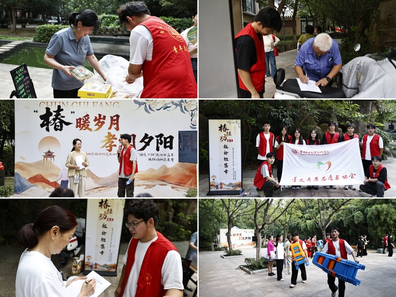在椿桂坊社區“椿暖歲月,孝潤夕陽”公益集市現場,藝術創意學院的大學生志愿者們忙著協助社區布置活動物料。他們分工協作,有的搭起宣傳展架,有的仔細張貼反詐海報,有的將印有“老年人防詐騙指南”的宣傳冊整齊擺放,干勁十足的身影成為集市里一道亮眼的青春風景。