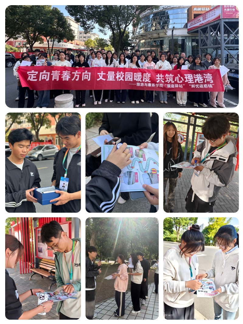 10月24-29日,旅游與康養(yǎng)學(xué)院圍繞“護航成長”主題,依托“一站式”學(xué)生社區(qū),整合“旅途驛站”與精品項目“解憂砸惑鋪”等平臺資源,組織開展了一系列形式多樣、內(nèi)容豐富的心理健康活動,構(gòu)建“教育+活動+互助”的多維心理育人體系,有效促進學(xué)生心理素質(zhì)提升。