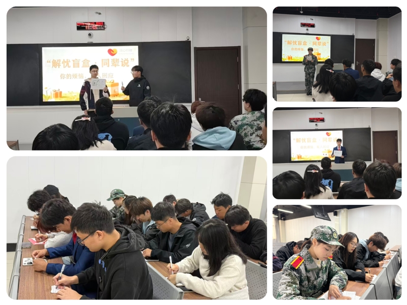 在“解憂盲盒·同輩說”活動中,50余名學(xué)生齊聚一堂,通過匿名投遞與隨機抽取“心事”的方式,以同輩視角為彼此的煩惱寫下暖心回應(yīng)與建議。活動營造了真誠開放的交流氛圍,讓學(xué)生在“傾聽”與“被傾聽”中感受到情感共鳴與支持,初步構(gòu)建起同輩心理互助的有效通道。