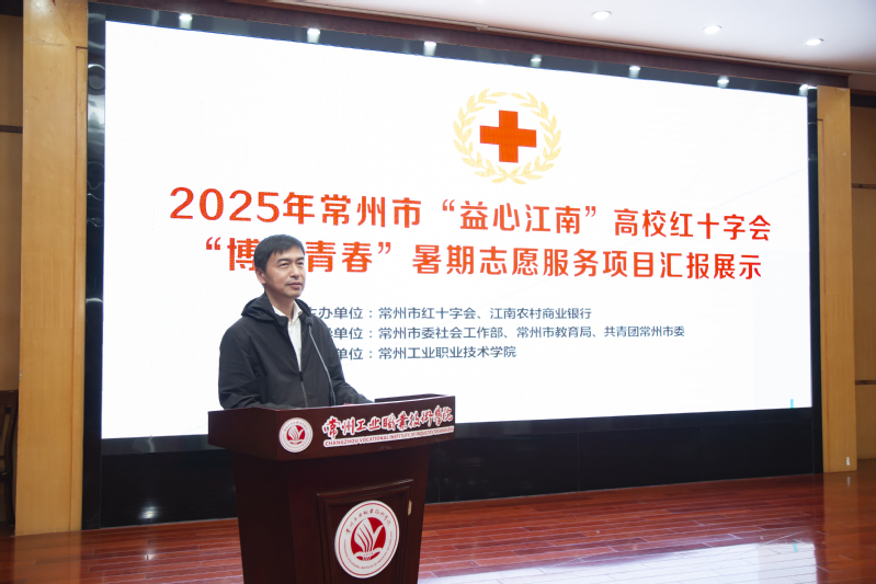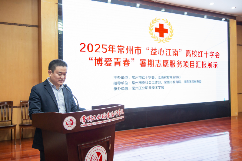 11月6日,2025年常州市“益心江南”高校紅十字會“博愛青春”暑期志愿服務項目總結展示活動在我校舉行。常州市紅十字會黨組書記、常務副會長戴亞東,我校黨委副書記吳麗云,江南農村商業銀行工會副主席殷錫峰,常州市紅十字會黨組成員、副會長鄭躍進,市委社工部、市教育局、團市委、市紅會等相關處室負責人,以及各高校紅十字會項目負責老師、大學生志愿者、學生代表共200余人參加活動。