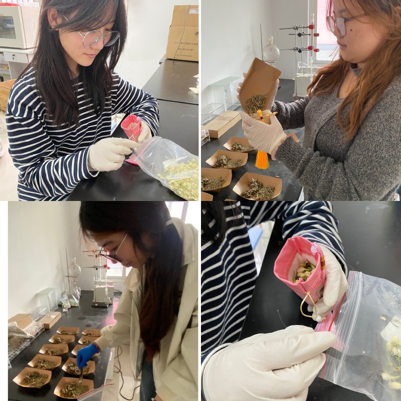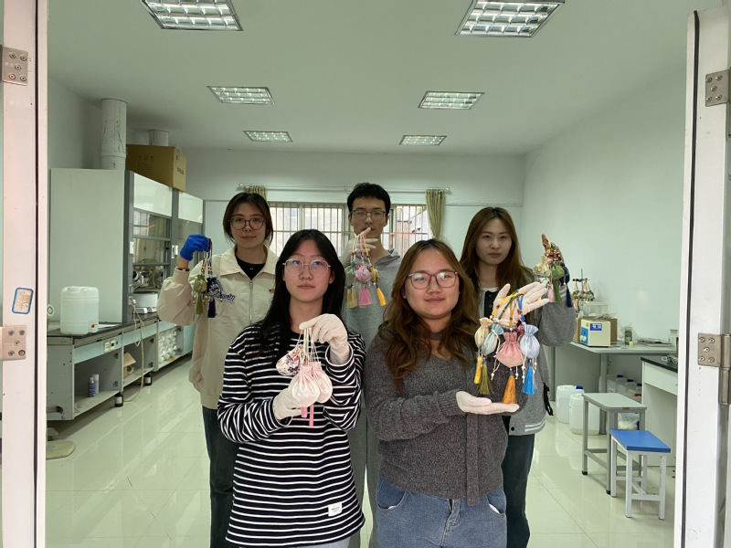 活動現場精心準備了艾草、薄荷、丁香等十余種草本材料。同學們在社團成員指導下,依據古方進行配比、稱量,親手調配專屬香囊。有的專注配制清心凝神的合香,有的精心搭配驅蚊防蟲的藥草,更有同學創意混搭,探索屬于自己的“嗅覺密碼”。將調配好的香料緩緩裝入錦囊,輕攏收口,再系以精美流蘇,每個步驟都是一次與傳統的對話,一次對美感的塑造。