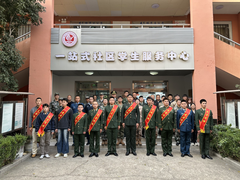 學工部(處)、人武部部長邢凱嶺為2025年秋季退役復學的同學佩戴“光榮退伍”綬帶。他在歡迎辭中高度肯定了退役士兵大學生胸懷報國之志,響應時代號召,投身火熱軍營的擔當作為,鼓勵全校退役大學生永葆本色,勤學篤行,將部隊錘煉的過硬紀律和作風轉化為學業奮斗和工作實踐的堅實行動,努力成為品學兼優的標桿和擔當奉獻的表率。