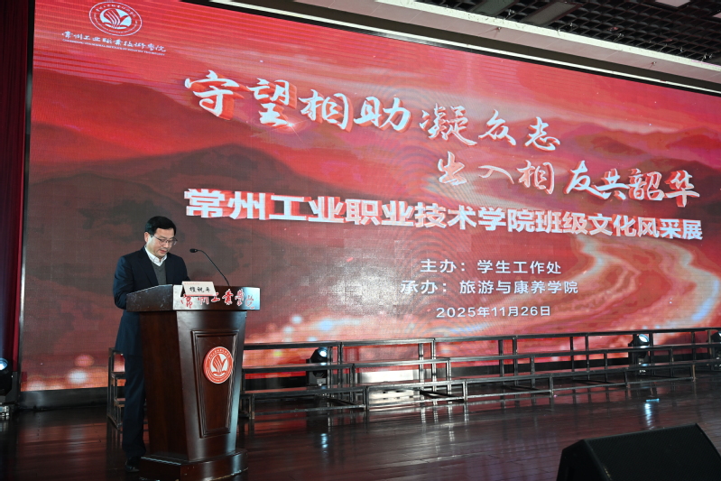 11月26日,由學(xué)工處主辦、旅游與康養(yǎng)學(xué)院承辦的2025年“守望相助凝眾志 出入相友共韶華”班級文化風(fēng)采展演在我校舉行,全校900余名師生共同見證這場班級風(fēng)采。副校長檀祝平出席活動并致辭。