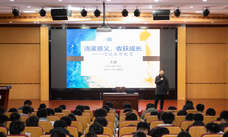 學(xué)院面向2025級(jí)全體學(xué)生,舉辦“澆灌意義,收獲成長(zhǎng)——漫談生命教育”專題講座,特邀常州工學(xué)院王健博士主講。王健以生動(dòng)案例切入,從生命的存在意義與成長(zhǎng)價(jià)值雙維度展開,結(jié)合學(xué)生常見心理困惑解析核心內(nèi)涵,分享實(shí)用心理調(diào)適方法并開展互動(dòng)問答。現(xiàn)場(chǎng)學(xué)生專注聆聽,并表示,講座讓自己深刻體會(huì)到了生活的重量,學(xué)會(huì)了更溫暖地陪伴同學(xué)。