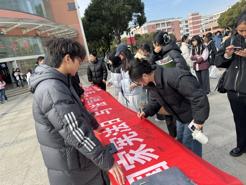 活動(dòng)現(xiàn)場(chǎng),部分老師和學(xué)生手持簽字筆,有序在長(zhǎng)約5米的主題橫幅上鄭重簽下自己的名字,每一個(gè)簽名都代表著一份承諾、一份責(zé)任。馬克思主義學(xué)院院長(zhǎng)李飛在簽字后表示:“這樣的活動(dòng)很有意義,簽字的過程不僅是一種儀式,更讓我真切感受到憲法的嚴(yán)肅性,以后會(huì)多學(xué)習(xí)憲法知識(shí),用法律保護(hù)自己的合法權(quán)益。”學(xué)生代表小李說道:“通過今天的活動(dòng),我明白了憲法不僅是書本上的條文,更是保護(hù)我們成長(zhǎng)的‘護(hù)身符’,今后會(huì)爭(zhēng)做憲法的忠實(shí)崇尚者和自覺遵守者。”法治宣講團(tuán)成員還在活動(dòng)現(xiàn)場(chǎng)通過法治知識(shí)問答、憲法條文誦讀等互動(dòng)形式,讓同學(xué)們?cè)谳p松愉悅的氛圍中學(xué)習(xí)憲法知識(shí),增強(qiáng)法治意識(shí)。