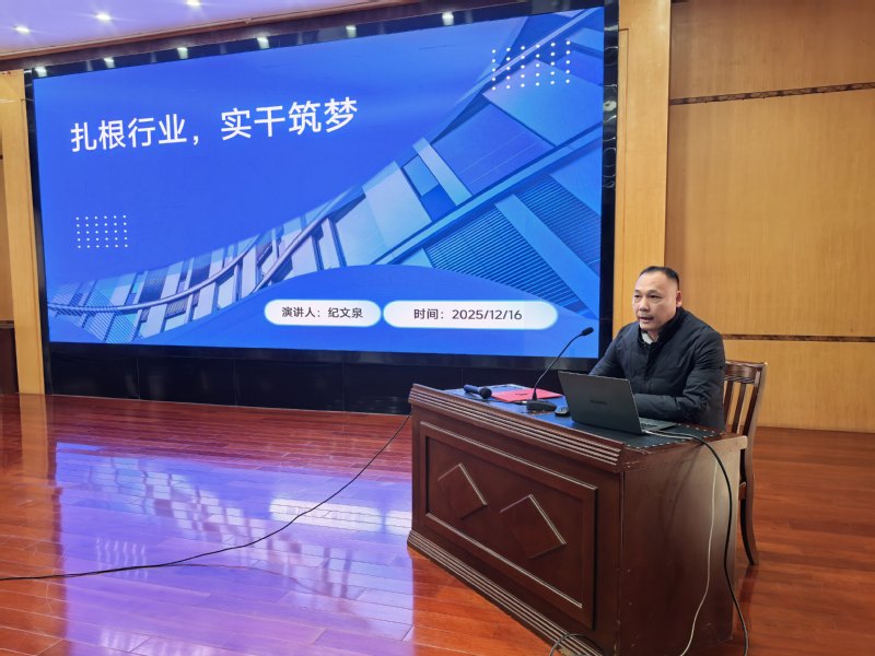 報告會上,紀文泉以“扎根行業,實干筑夢”為主題,結合自身從退伍軍人到企業家的奮斗經歷,生動分享了他的職業發展理念與實踐心得。他以“先造血再談理想”的務實觀點切入,強調基層實踐對錘煉意志、積累經驗的重要價值,鼓勵學生在實踐中成長、在實干中成才。