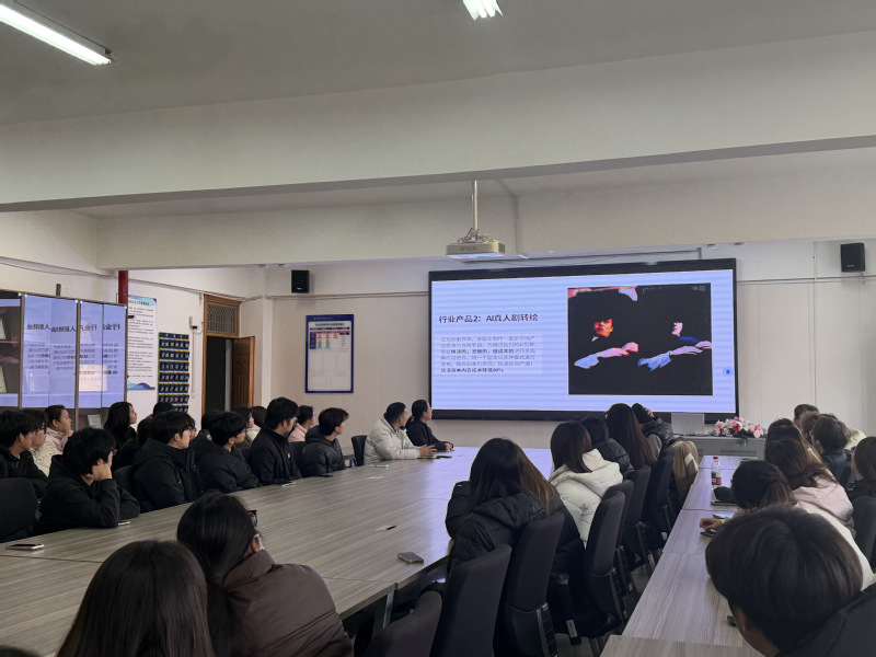 會后,夏文豪為學院相關專業學生開展宣講,詳細介紹了公司業務、文化及AI影視崗位人才招聘需求。他結合企業近期完成的AI影視項目案例,直觀展示了該崗位的工作內容與發展前景。在互動環節,參會學生圍繞崗位晉升路徑、實踐培訓安排、實習就業愿景等問題積極提問。當天共有30余名學生通過初審,將參加后續的企業培訓與實習甄選。
