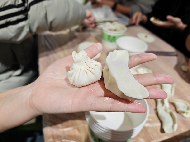 “冬至大如年,人間小團圓”,餃子作為冬至標志性美食,成為本次活動的核心載體。活動打破傳統形制,將漢服元素與創意巧妙融合:餃子形狀創意呈現月牙、元寶、梅花等造型,餡料亦兼顧經典與創新,現場氣氛熱烈。