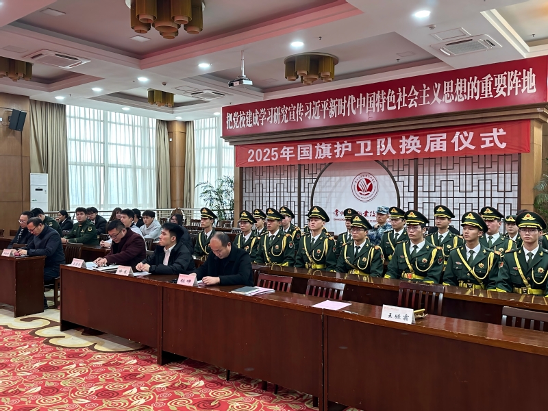 12月24日,我校舉行2025年國旗護(hù)衛(wèi)隊(duì)換屆儀式。國旗護(hù)衛(wèi)隊(duì)隊(duì)員、退役大學(xué)生發(fā)展服務(wù)聯(lián)合會(huì)基干成員、二級(jí)學(xué)院學(xué)生代表參加大會(huì)。活動(dòng)由學(xué)生工作部(處)、心理健康中心、人民武裝部副部長(zhǎng)王婭霜主持。