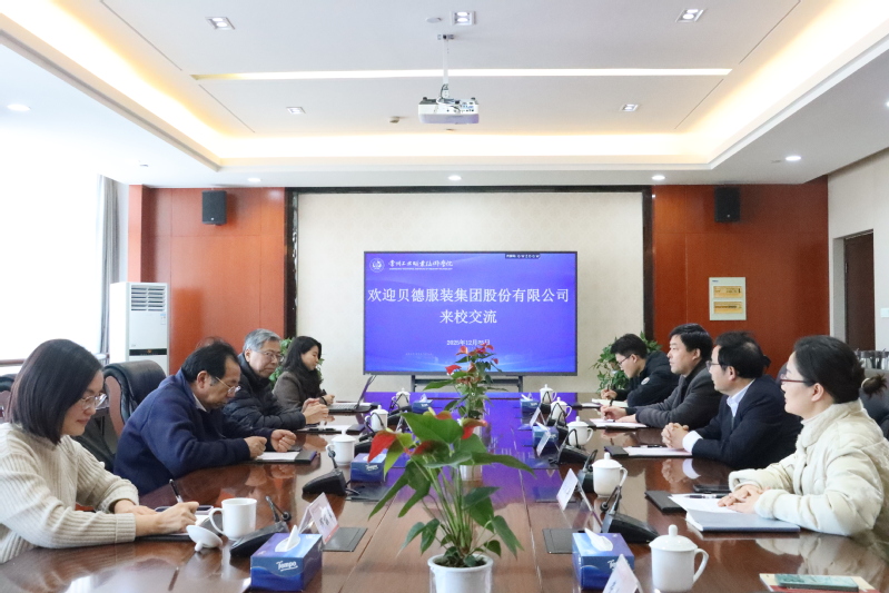12月25日,貝德服裝集團(tuán)股份有限公司黨總支書記蔣云南率隊蒞臨我校,就校企深度合作、留學(xué)生聯(lián)合培養(yǎng)等核心議題與我校開展專題調(diào)研和座談交流。副校長檀祝平出席會議,會議由通識教育與體育學(xué)院黨總支書記江小丹主持。