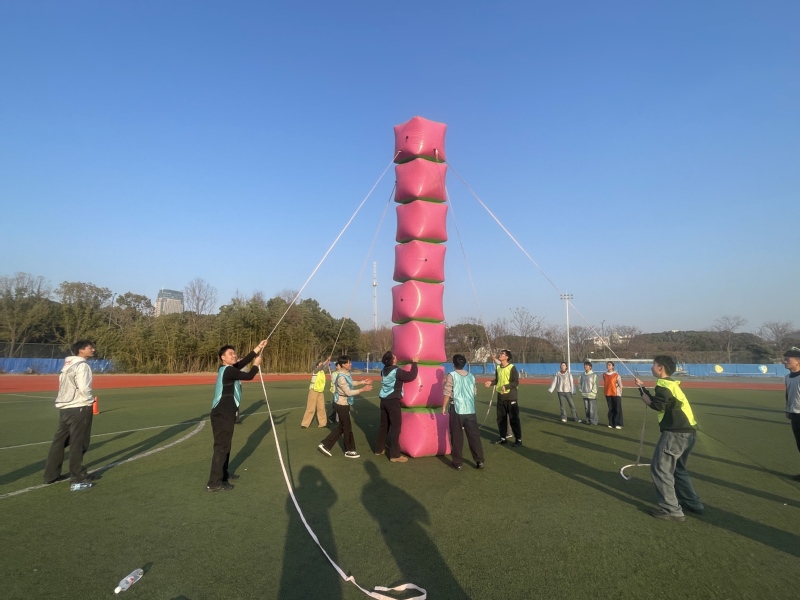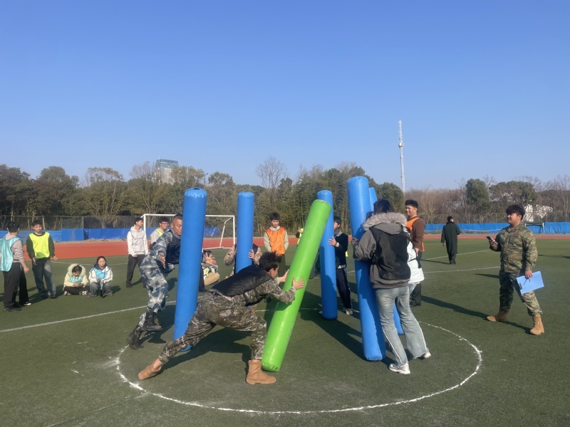 室外賽場(chǎng)上,各項(xiàng)趣味賽事競(jìng)爭(zhēng)激烈。選手們沉穩(wěn)發(fā)揮,為團(tuán)隊(duì)奮力拼搏。“陸地龍舟接力賽”中幾組隊(duì)員步調(diào)一致,奮力爭(zhēng)先;“不倒森林”中,各參賽隊(duì)依令迅速轉(zhuǎn)動(dòng)手中道具,現(xiàn)場(chǎng)加油聲不斷;“步步高升”中同學(xué)們奮力壘出“人生”新高度;“超級(jí)障礙賽”環(huán)節(jié)退役大學(xué)生與國(guó)護(hù)隊(duì)隊(duì)員分兩組,翻越各種障礙,接力沖刺,現(xiàn)場(chǎng)觀眾吶喊助威,氣氛熱烈。