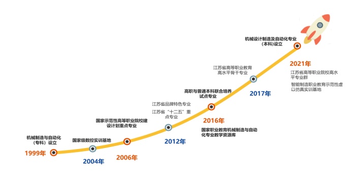 本專業(yè)由1920年辦學(xué)之初的機械制造與自動化、機械設(shè)計與制造等專科專業(yè)組成,先后入選國家示范建設(shè)重點專業(yè)、江蘇省特色專業(yè)、江蘇省重點專業(yè)群、江蘇省高等職業(yè)教育高水平骨干專業(yè)。建有國家級數(shù)控實訓(xùn)基地,全國機械行業(yè)職業(yè)院校先進制造技術(shù)促進與服務(wù)基地,江蘇省現(xiàn)代產(chǎn)業(yè)學(xué)院,江蘇省雙師型名師工作室,江蘇省精密制造工程技術(shù)研究開發(fā)中心。