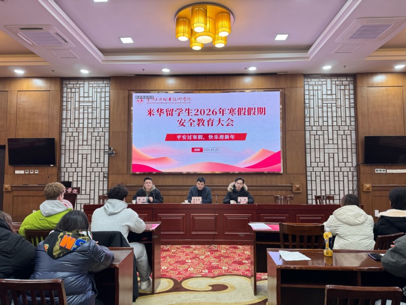 1月20日,我校召開來華留學(xué)生2026年寒假安全教育大會。國際與港澳臺事務(wù)處、海外教育學(xué)院(合署)處長張書貴出席會議并講話,全體輔導(dǎo)員、班主任及來華留學(xué)生參加了會議。