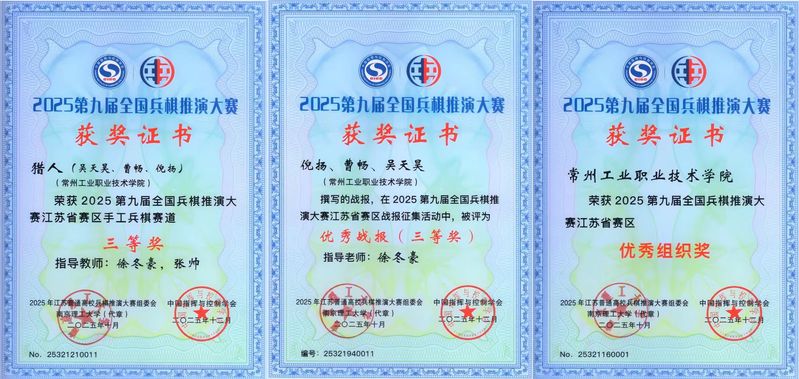 在由南京理工大學(xué)主辦、南京大學(xué)及中國(guó)人民解放軍陸軍工程大學(xué)承辦的2025年江蘇省普通高校兵棋推演大賽上,我校首次亮相便取得不俗成績(jī)。優(yōu)秀學(xué)子倪揚(yáng)、吳天昊、曹暢組成的代表隊(duì)榮獲手工兵棋賽道三等獎(jiǎng)及“優(yōu)秀戰(zhàn)報(bào)獎(jiǎng)”,學(xué)校獲得“優(yōu)秀組織獎(jiǎng)”。兵棋推演有助于培養(yǎng)學(xué)生戰(zhàn)略思維與協(xié)同能力,此次參賽也標(biāo)志著我校在拓展國(guó)防教育實(shí)踐形式、發(fā)揮退役大學(xué)生士兵特長(zhǎng)方面取得了新的進(jìn)展。