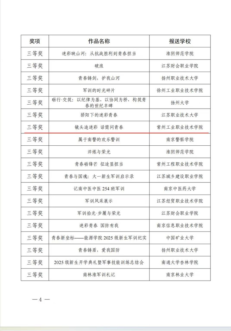 近日,2025年度江蘇省國(guó)防教育和軍事課教學(xué)系列賽事結(jié)果陸續(xù)揭曉,我校師生喜獲多項(xiàng)佳績(jī),充分展現(xiàn)了我校國(guó)防教育的扎實(shí)成效與師生昂揚(yáng)向上的精神風(fēng)貌。