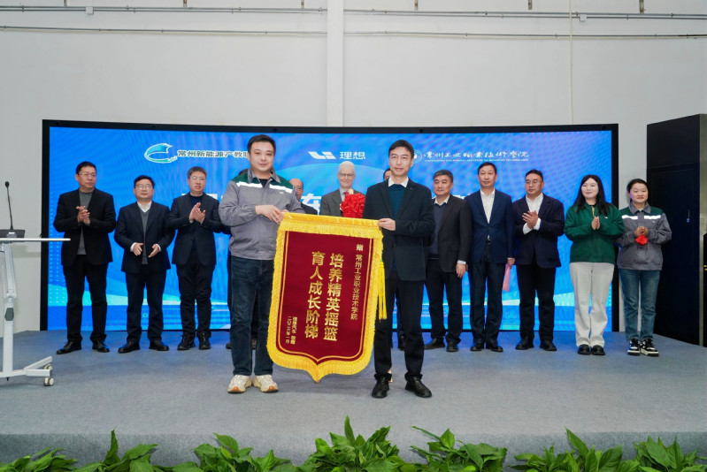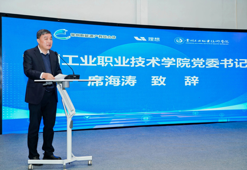 開班儀式上還舉行了“理想汽車常州培訓(xùn)基地”授牌儀式,我校黨委書記席海濤致辭。他指出,自2022年雙方啟動“揚(yáng)帆計(jì)劃”訂單班以來,校企雙方以產(chǎn)教融合為紐帶,走出了協(xié)同育人的堅(jiān)實(shí)道路。此次授牌,基地將進(jìn)一步整合雙方優(yōu)勢,深化教育教學(xué)改革,完善運(yùn)行機(jī)制,優(yōu)化人才培養(yǎng)方案,強(qiáng)化師資隊(duì)伍建設(shè),把生產(chǎn)現(xiàn)場轉(zhuǎn)化為實(shí)訓(xùn)場景,把前沿技術(shù)轉(zhuǎn)化為育人內(nèi)容,讓基地充分發(fā)揮人才培養(yǎng)、技術(shù)支撐作用,為新能源汽車產(chǎn)業(yè)高質(zhì)量發(fā)展輸送更多高素質(zhì)技術(shù)技能人才。
