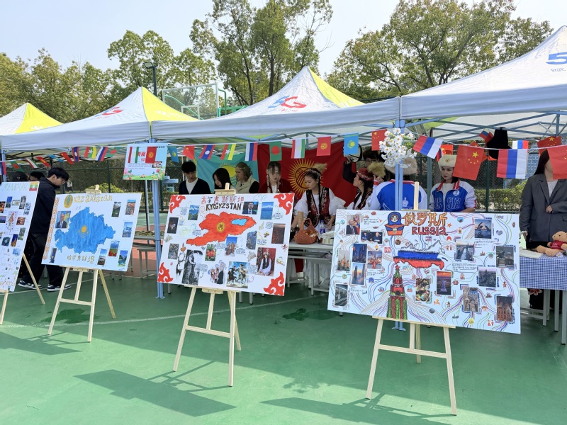 文化展示區(qū)里,各國(guó)專屬展板各具特色,均由留學(xué)生親手繪制完成。展板之上,俄羅斯的異域風(fēng)光、哈薩克斯坦的游牧風(fēng)情、塔吉克斯坦的高原特色、吉爾吉斯斯坦的草原文化、老撾的熱帶風(fēng)情等一一鮮活呈現(xiàn),吸引眾多師生駐足觀賞、細(xì)細(xì)品讀。大家不時(shí)與留學(xué)生交流探討,在輕松的互動(dòng)中增進(jìn)了對(duì)不同國(guó)家文化的了解與認(rèn)知。
