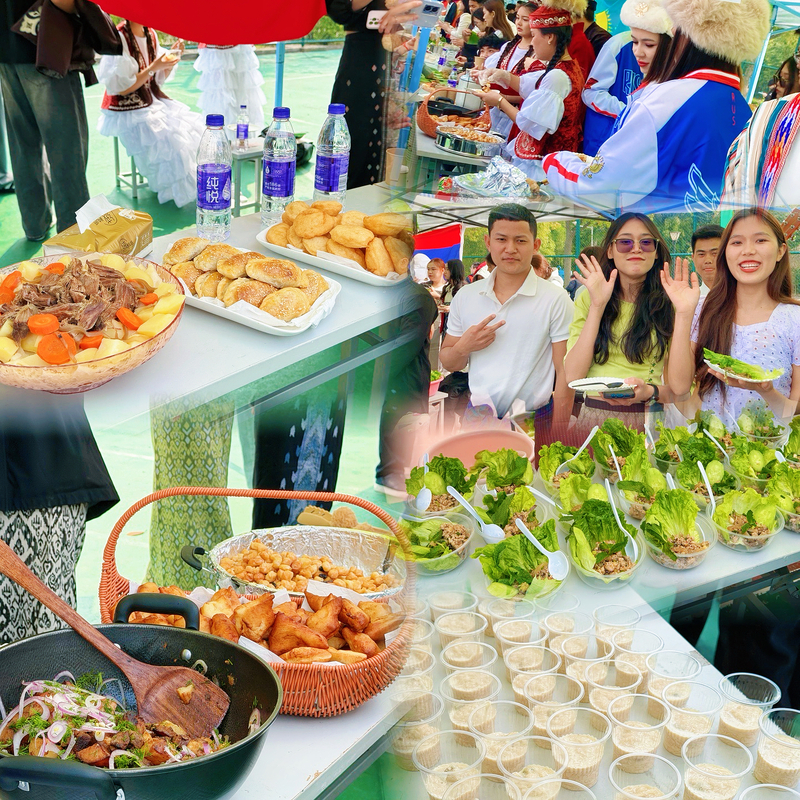 美食體驗(yàn)區(qū)更是人氣高漲,來(lái)華留學(xué)生化身“美食主廚”,現(xiàn)場(chǎng)制作并呈上本國(guó)特色美食。俄羅斯俄式薄餅香甜軟糯,搭配燉肉卷心菜,咸香濃郁、口感醇厚;哈薩克斯坦傳統(tǒng)手抓肉肉質(zhì)鮮嫩、原汁原味,盡顯草原飲食的豪邁;吉爾吉斯斯坦庫(kù)爾達(dá)克焦香入味,包爾薩克外酥內(nèi)軟,查克查克甜香酥脆;緬甸景頗式雞肉菜酸辣鮮香;孟加拉國(guó)甜粉絲甜潤(rùn)適口……師生們穿梭于各個(gè)美食展位,品嘗異國(guó)美味,現(xiàn)場(chǎng)歡聲笑語(yǔ)不斷,氛圍熱烈非凡。